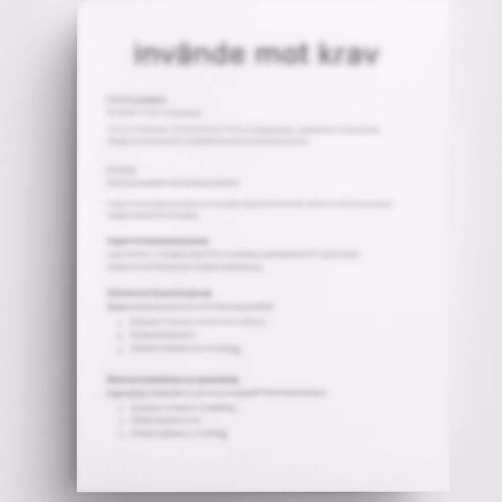 Den här mallen hjälper dig att snabbt och tryggt bestrida ett krav — oavsett om det beror på felaktiga uppgifter, en betald skuld, avtalstvister, saknade handlingar eller andra missförstånd.